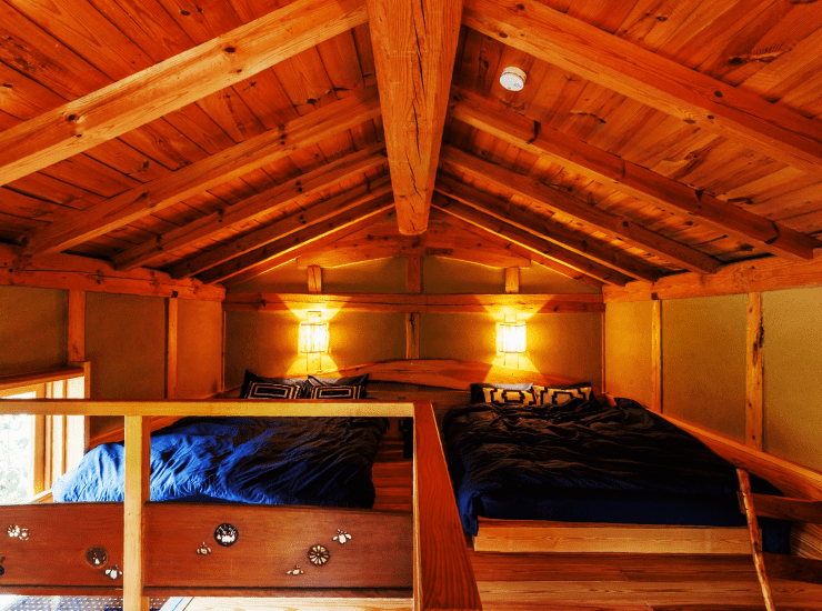 設備/お風呂:五右衛門ぶろ(自動お湯張り)・布団:ダブルベッド2台・台所:調理可能(調理器具は必要に応じて貸出準備あり)・洗濯:洗濯機なし(車で2分のアイタウンアベルにランドリーあり)